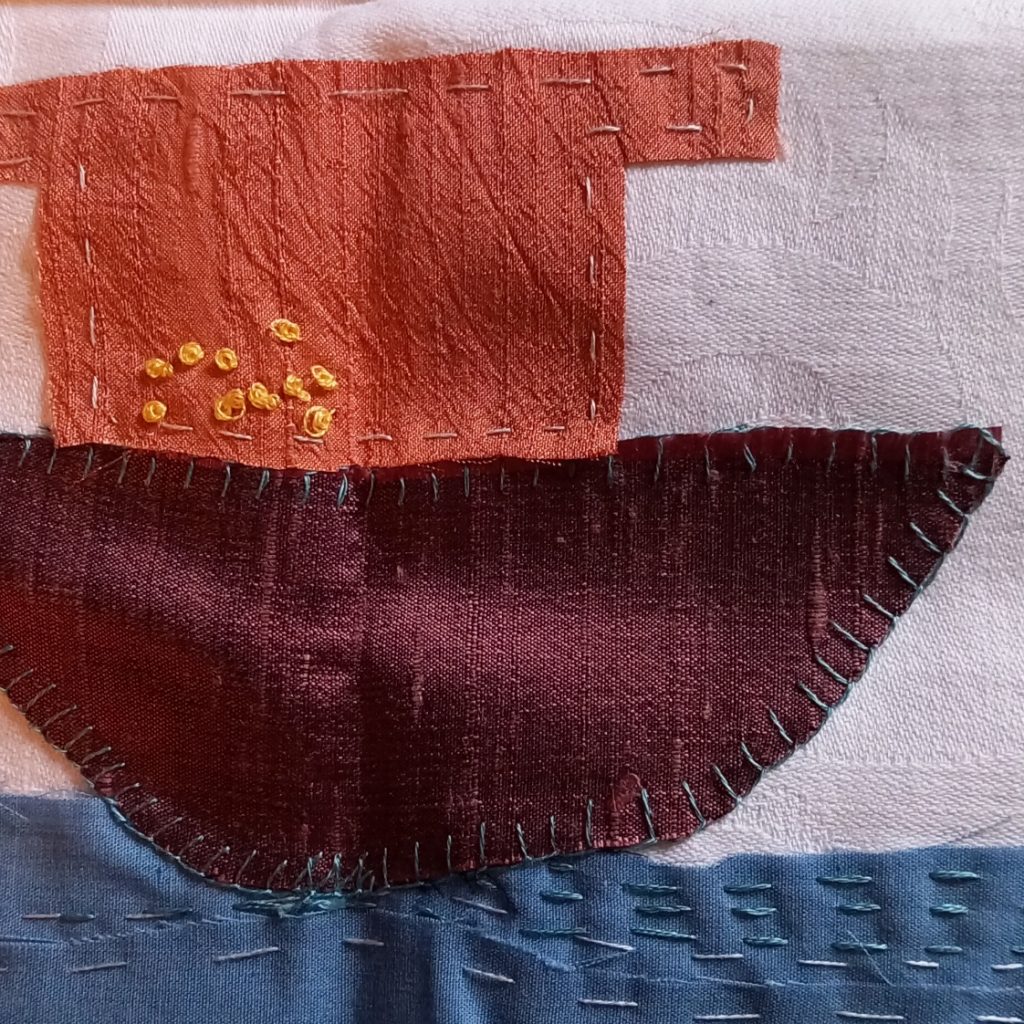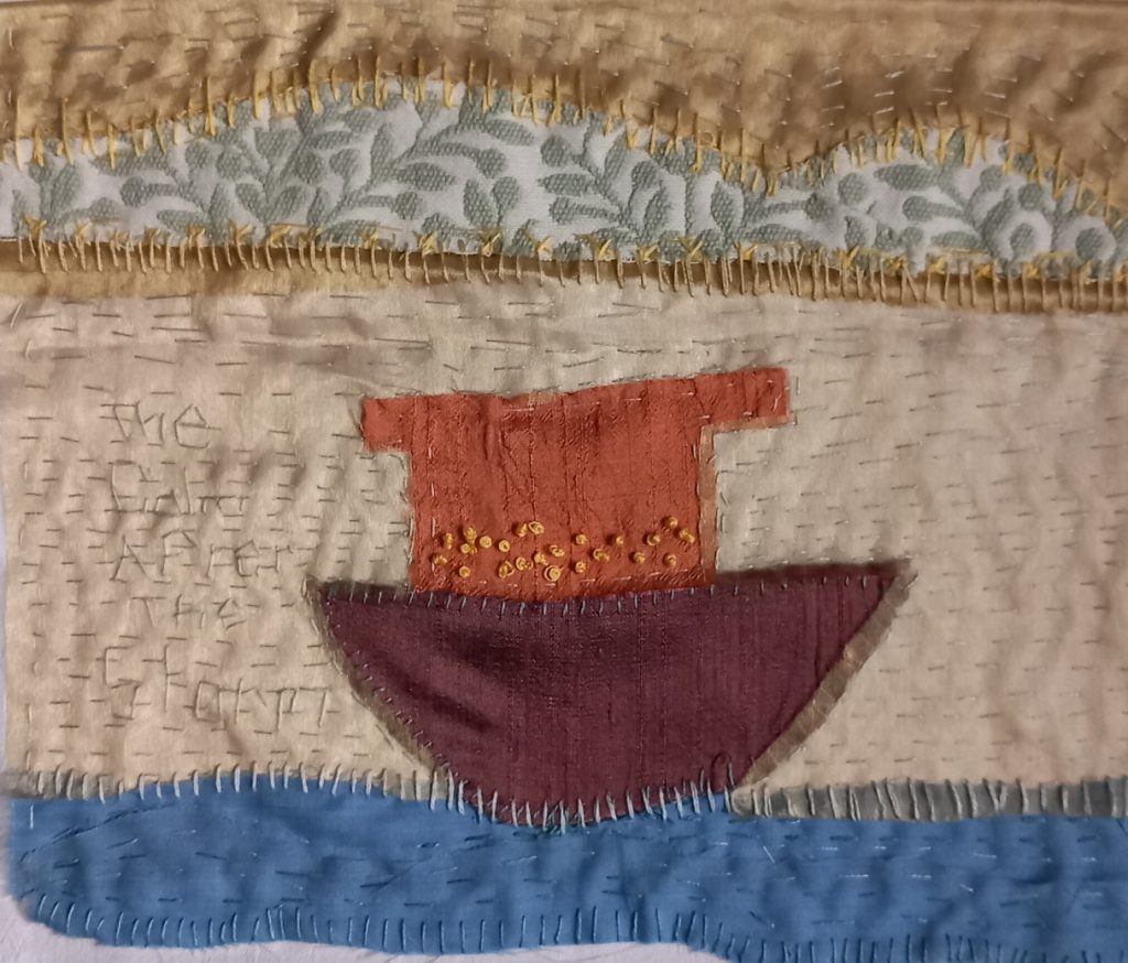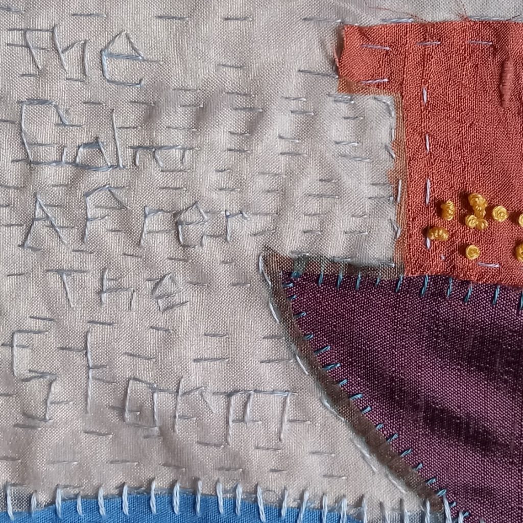 The intention for week 12 was to make a spirit cloth. It seemed appropriate as I had an opportunity to go on a pilgrimage. I duly packed some silks, threads, linen fabric, scissors and a needle. I anticipated time and energy to enjoy some creativity as part of this journey.