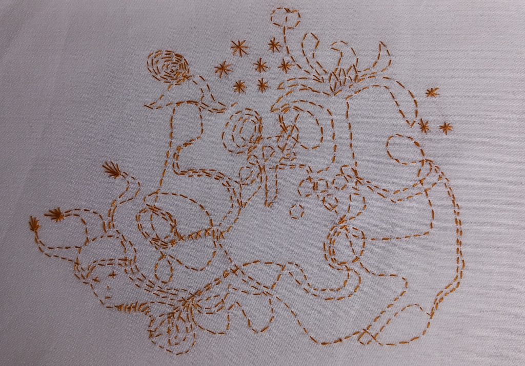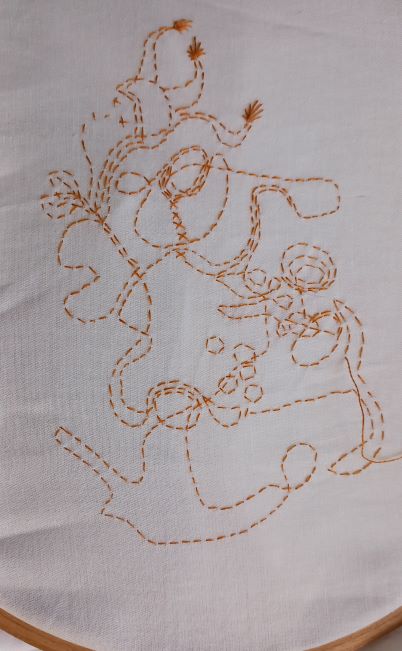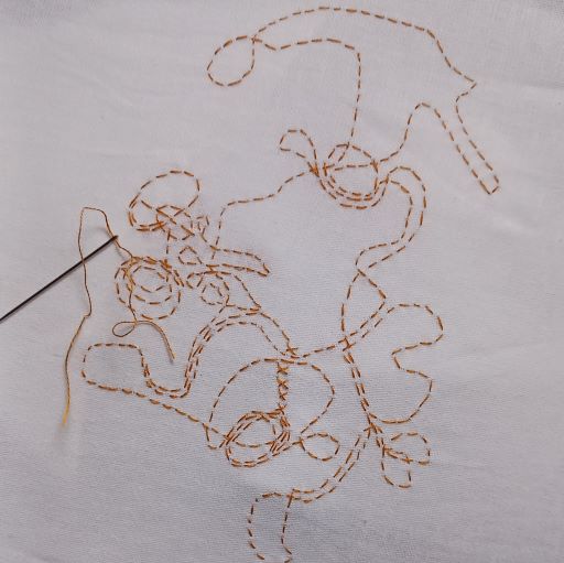 I had no plan. No prior drawing in mind. No subject matter. I just started with a simple running stitch. But just one stitch at a time. Initially I felt like I was taking a walk into a space I had not visited before. After the first 30 minutes I realised I had not made any straight lines. I felt like I was taking a walk around the garden. Following a footpath. Coming across borders and flower beds.